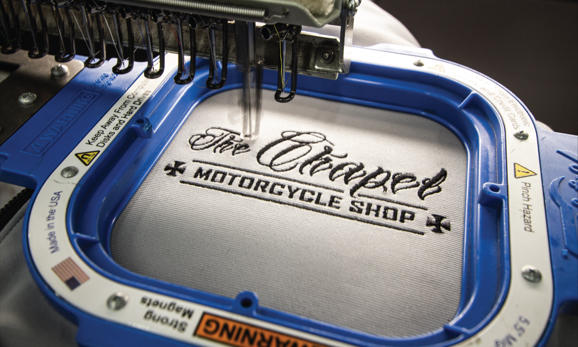 You know us for custom embroidery, but Chapel Customs is much more than that. The same clean lines and high quality are now available in our direct-to-film printing, embroidery, Laser Etching, banners, and stickers. Contact the Chapel customs team for more information.