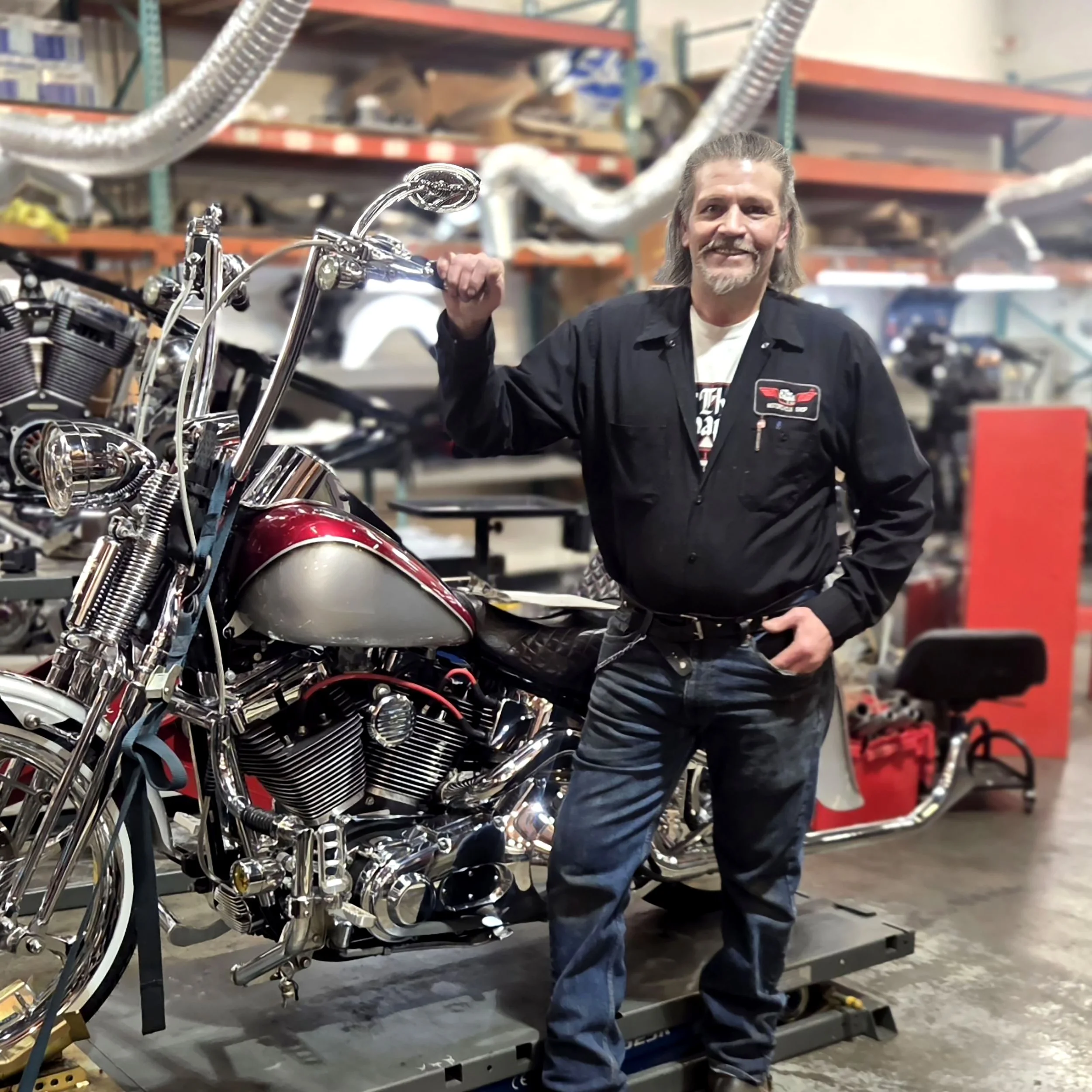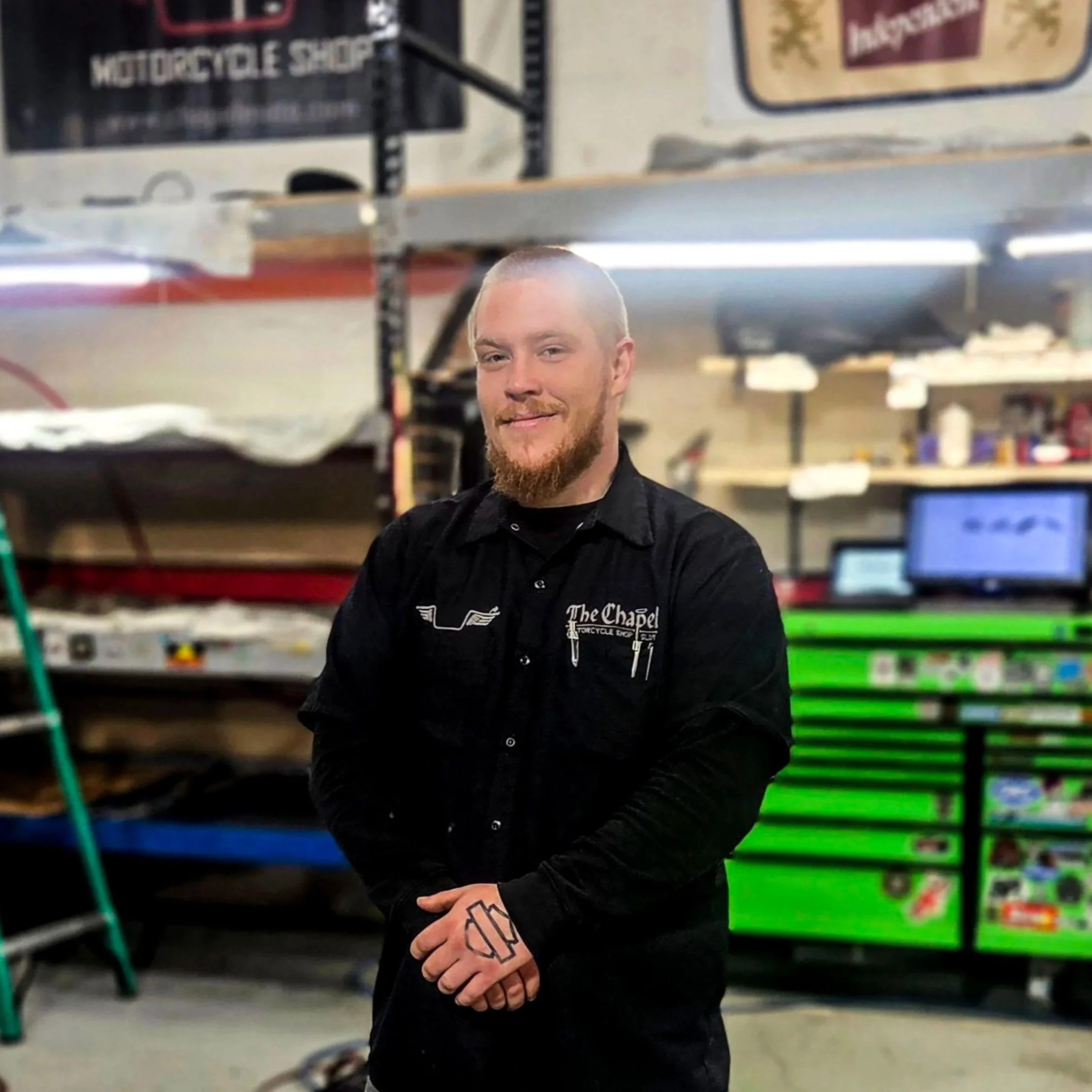 Charlie is dedicated to helping customers seamlessly navigate their repair needs, expertly guiding them through every step of the service process. You’ll usually find him at the front desk—answering phones, assisting customers, and helping keep operations running smoothly. His love for motorcycles and the upbeat atmosphere at The Chapel make it a place he’s proud to be a part of.